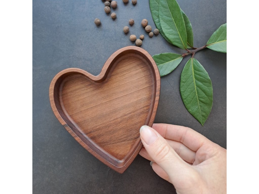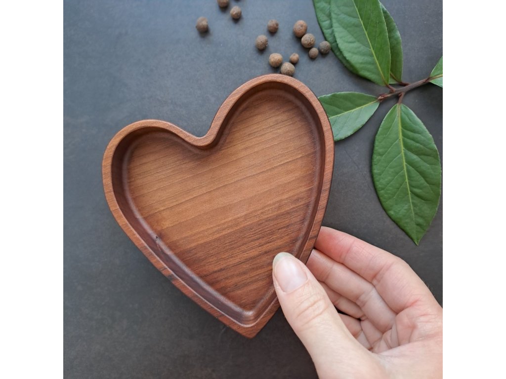 Mini mistička ve tvaru srdce je vyrobená z masivního pařeného ořechu, dřeva s elegantní kresbou a hlubokým hnědým tónem. Hodí se jako odkládací místo pro šperky, klíče či drobnosti, ale stejně tak poslouží jako originální dárek pro někoho blízkého.