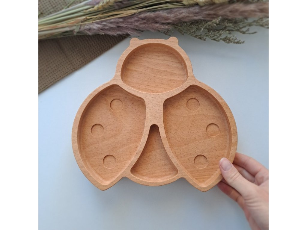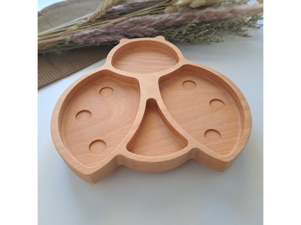 Beruška dřevěný talíř ve tvaru roztomilé berušky, která je připravena k odletu.