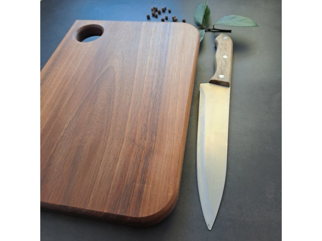 Krájecí prkénko má výraznou, elegantní kresbu a hluboký přírodní tón, díky kterému se z praktického nástroje stává i designový doplněk každé kuchyně.